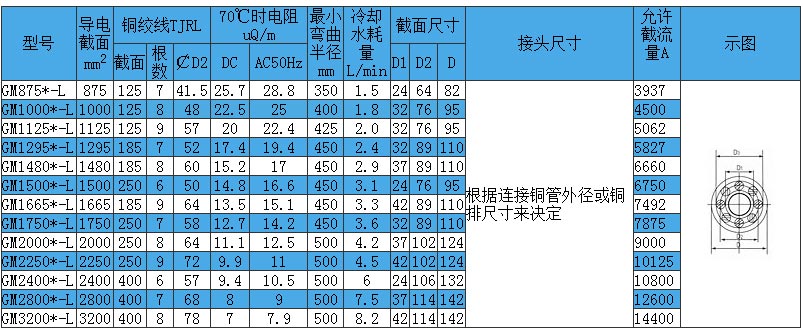 訂貨須知 1、訂貨時須提供型號、長度和被連接件(鋼管或鋼排)的相關尺寸。表中*為接頭結構型式,一般小規格銅管用A型接頭,大直徑銅管擬選用B(哈夫)接頭。銅排選用C型接頭。 2、水質及水質要求:表中給出的冷卻水耗量是以長度為2m,升溫10℃及在電流密度為4.5A/mm2(表中給出的截流量)情況下的數值,水質應符合GB10067.1-88《電熱設備基本技術條件》之規定。
